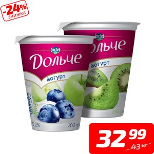 Йогурт в асортименті, 3,2%, стакан, ТМ «Дольче», 280 г