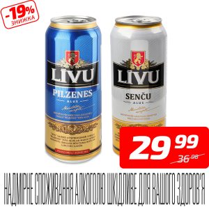 Пиво «Sencu» або «Pilzenes» світле, 4,4-5%, ж/б, ТМ «Livu», 0,5 л