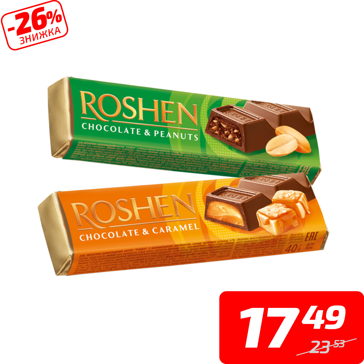 Батончик шоколадний в асортименті, ТМ «Рошен», 38-43 г