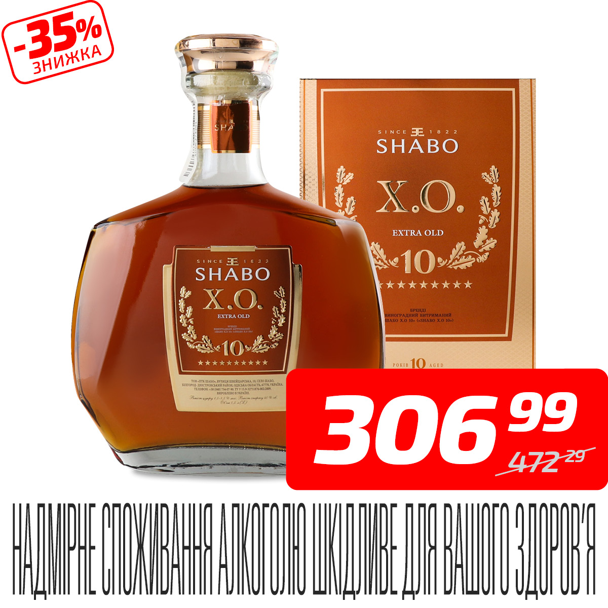 Бренді виноградний «Х.О 10» витриманий, коробка, 40%, ТМ «Шабо», 0,5 л