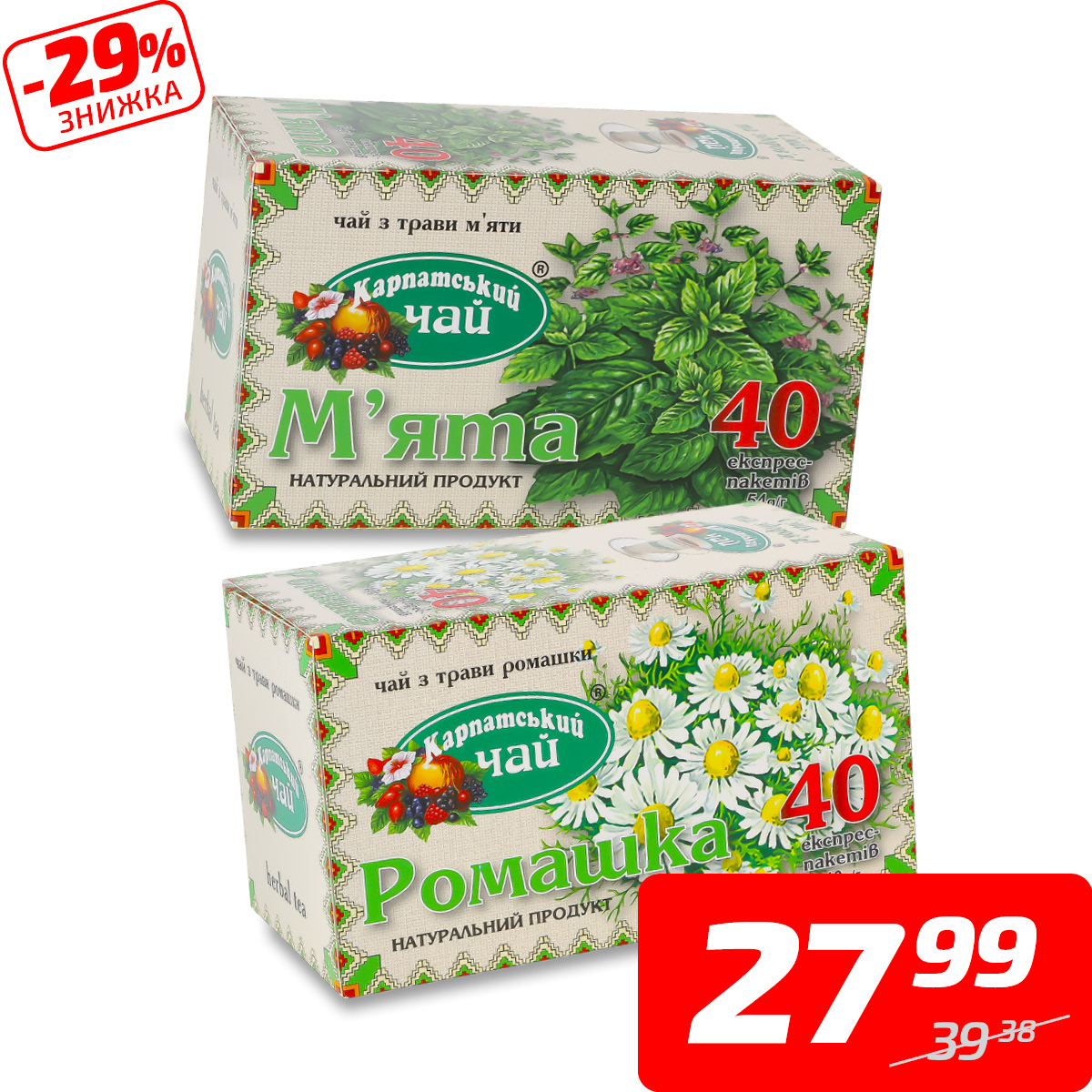 Чай «Ромашка» або «М’ята», ТМ «Карпатський чай», 40 пак.