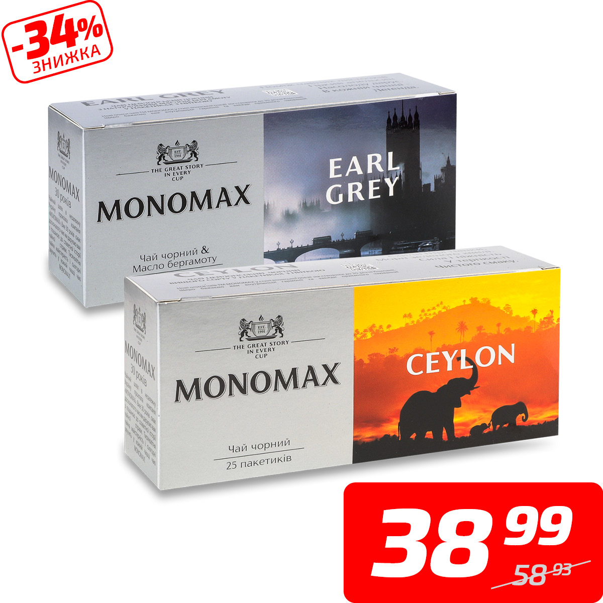 Чай в асортименті, ТМ «Monomax», 25*2 г