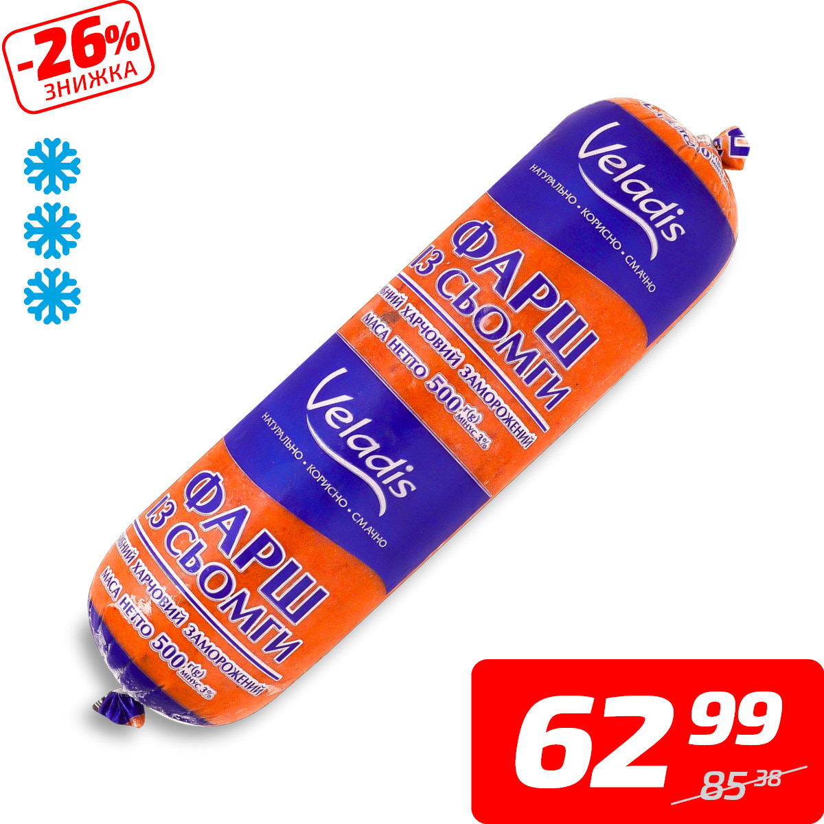Фарш із сьомги, заморожений, ТМ «Veladis», 500 г