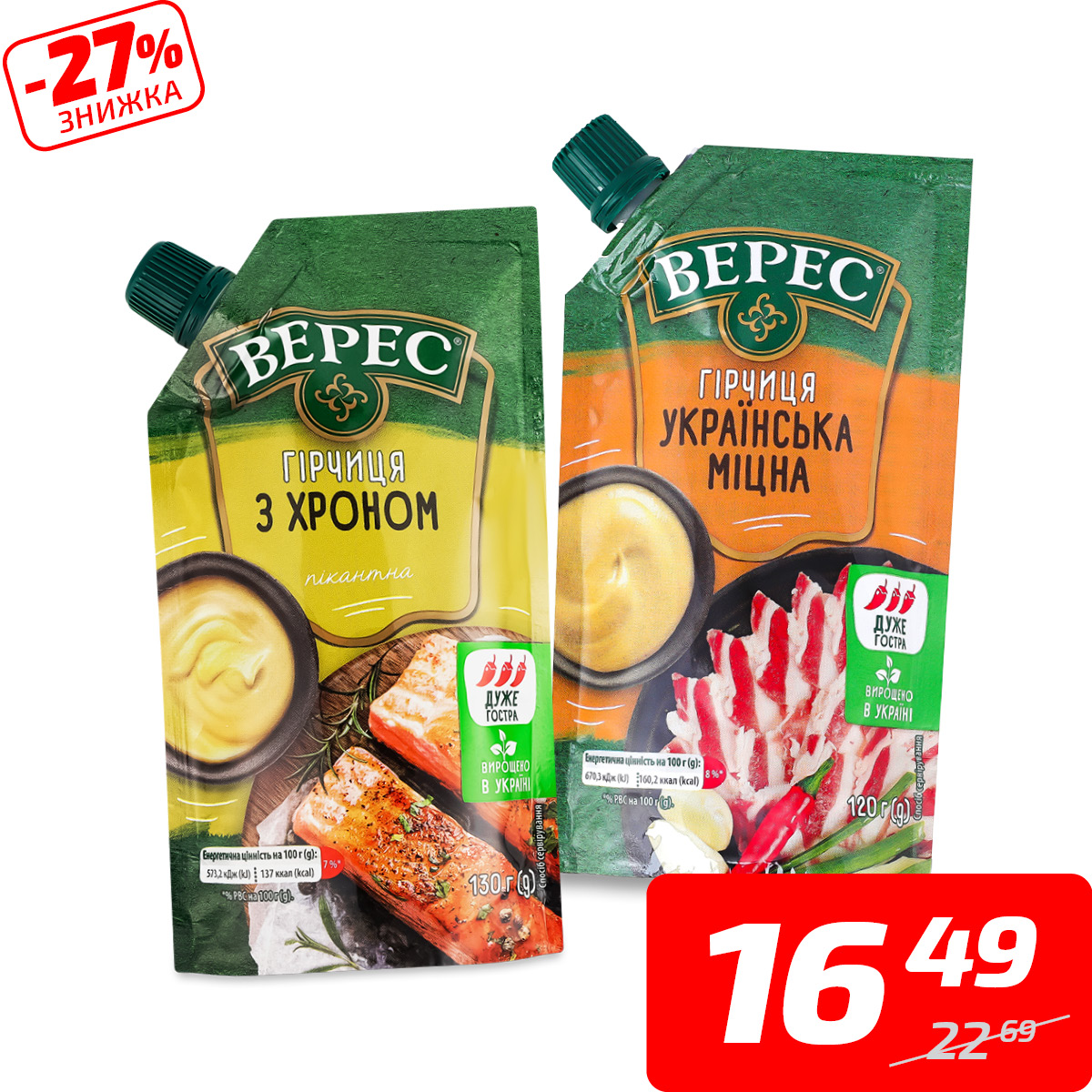 Гірчиця в асортименті, ТМ «Верес», 130 г