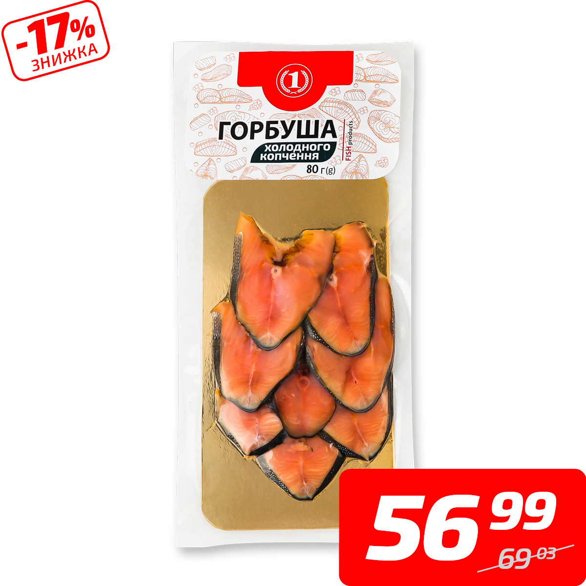 Горбуша, х/к, нарізка, ТМ «1», 80 г