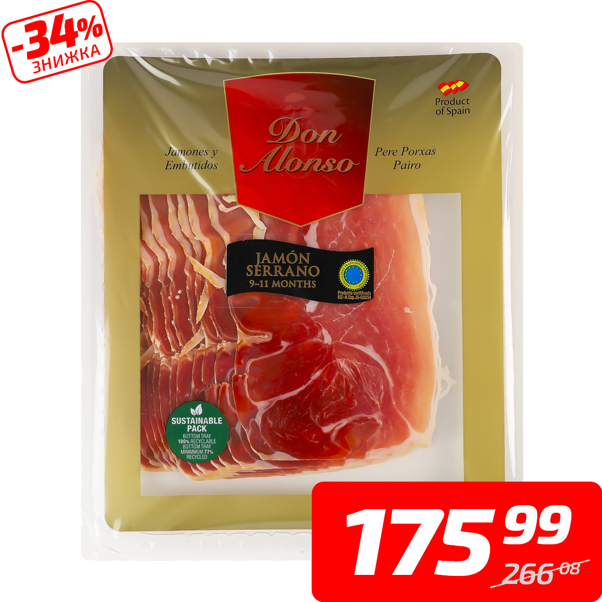 Хамон «Serrano», с/в, 9-11 міс., нарізка, ТМ «Don Alonso», 180 г