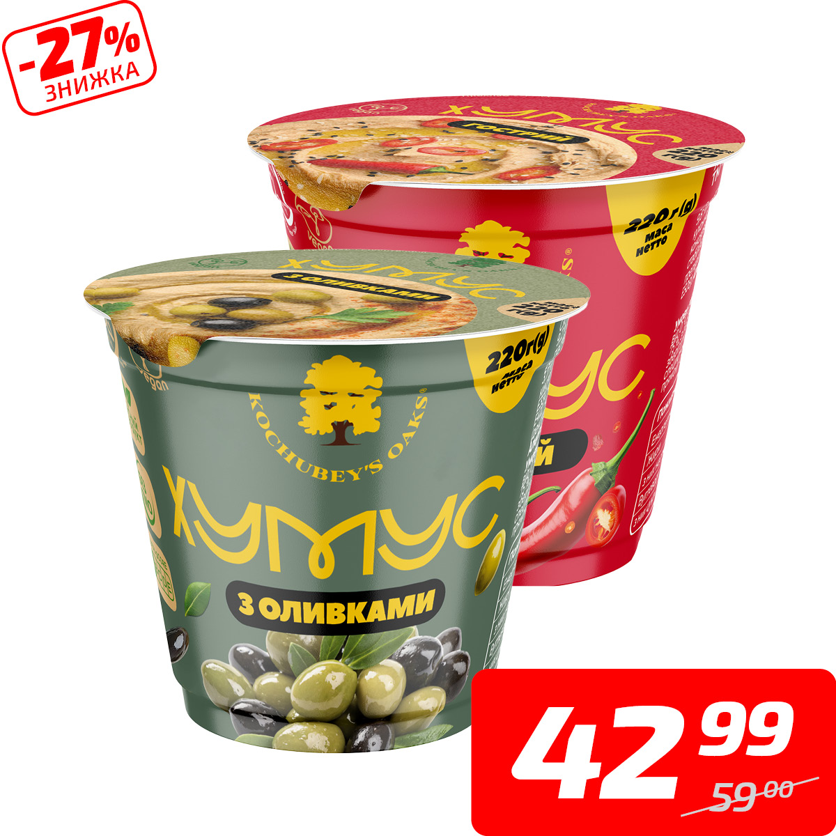 Хумус в асортименті, стакан, ТМ «Kochubey’s Oaks», 220 г