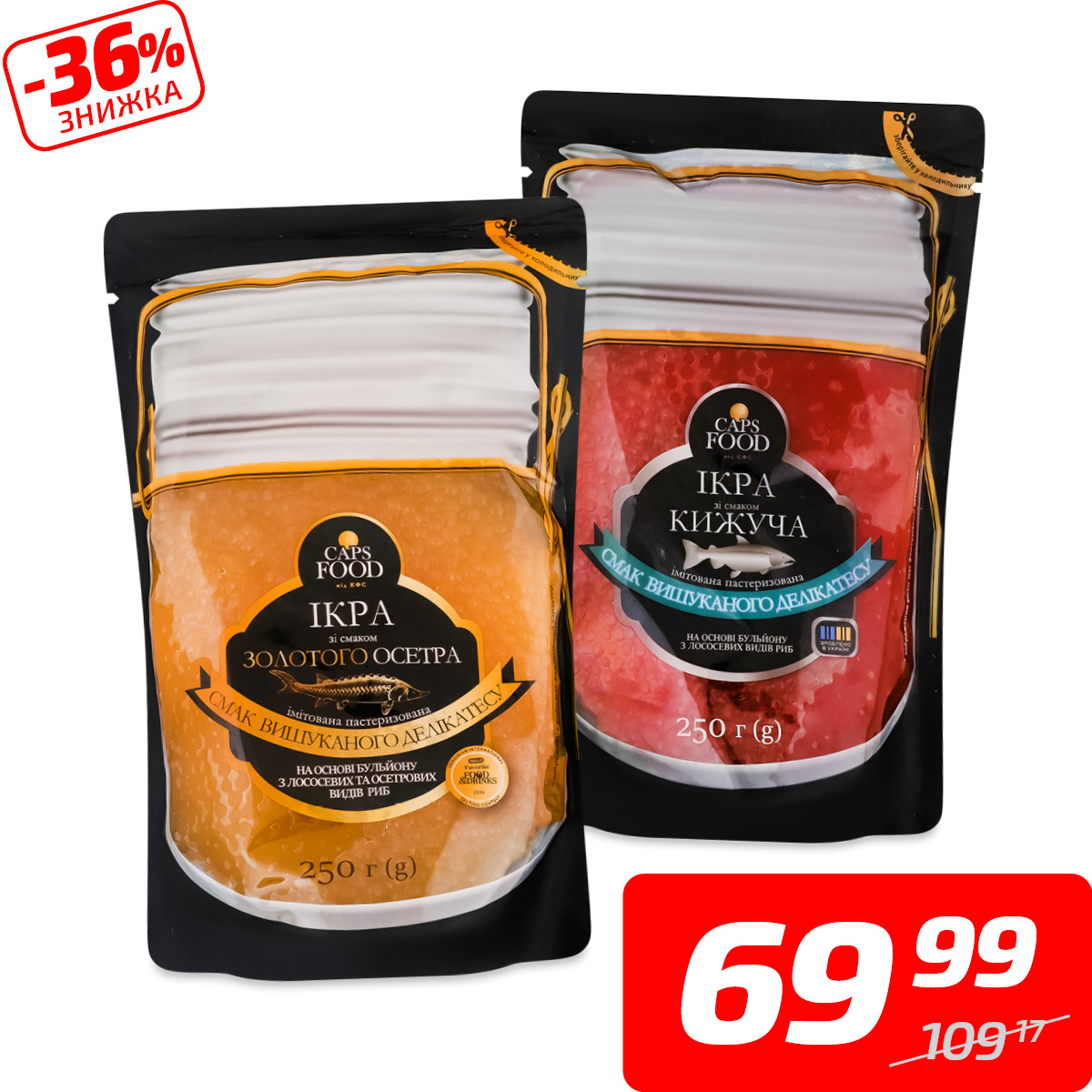 Ікра імітована зі смаком «Кижуча» або «Золотого осетра», ТМ «Caps food», 250 г