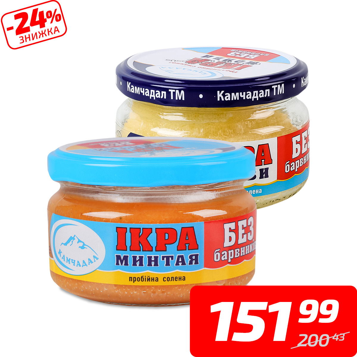 Ікра мойви або минтая, пробійна солена, ТМ «Камчадал», 180 г