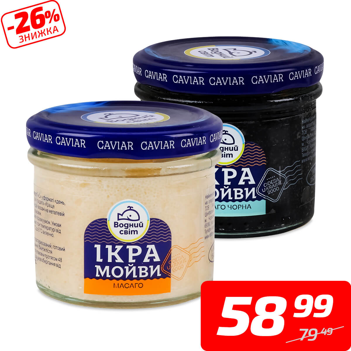 Ікра мойви «Масаго» в асортименті, ТМ «Водний світ», 100 г
