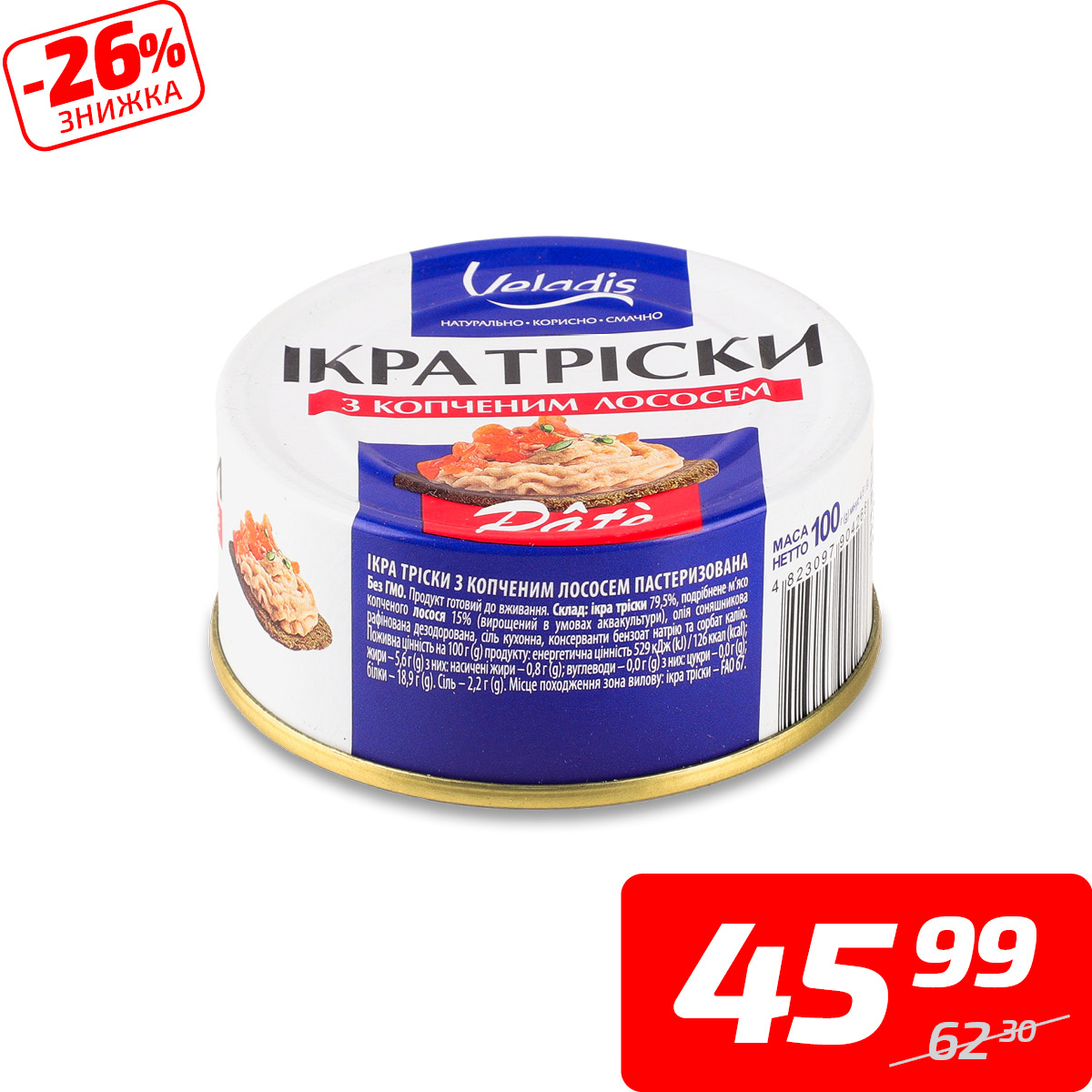 Ікра тріски «Pate» з копченим лососем, ТМ «Veladis», 100 г