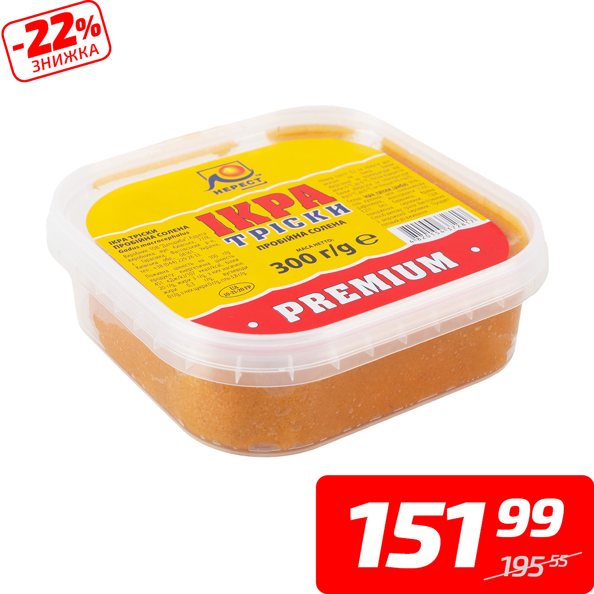 Ікра тріски «Premium» пробійна солена, ТМ «Нерест», 300 г