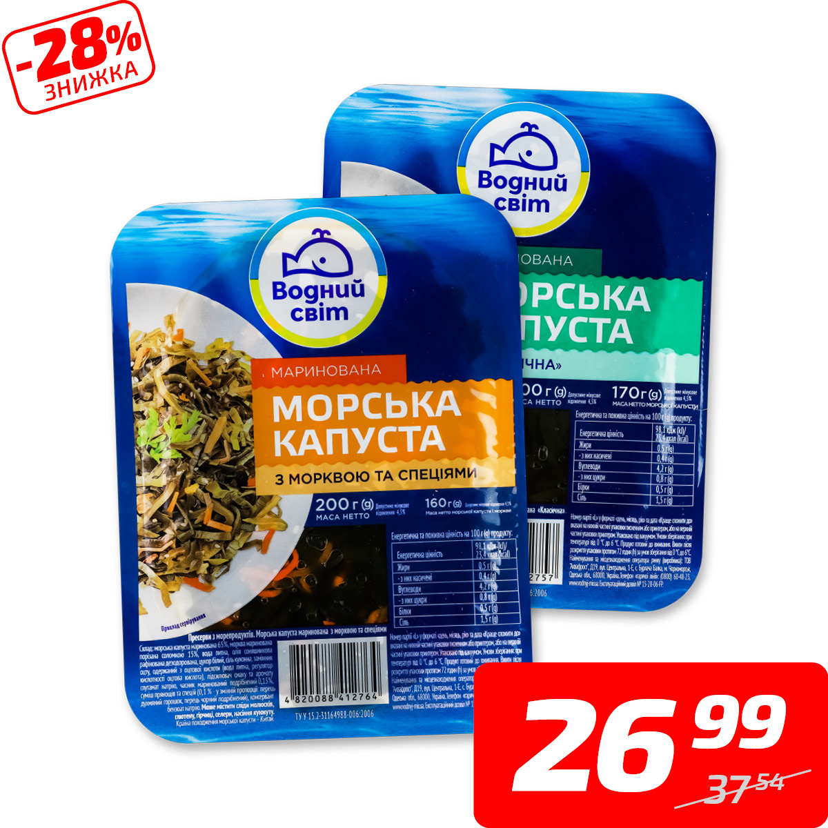 Капуста морська маринована з морквою або «Класична», ТМ «Водний світ», 200 г
