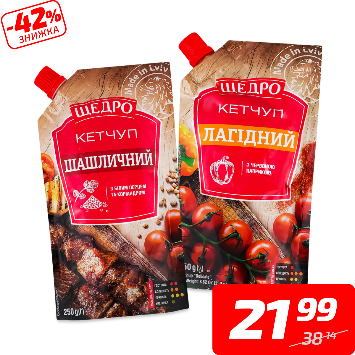 Кетчуп «Лагідний» або «Шашличний», ТМ «Щедро», 250 г