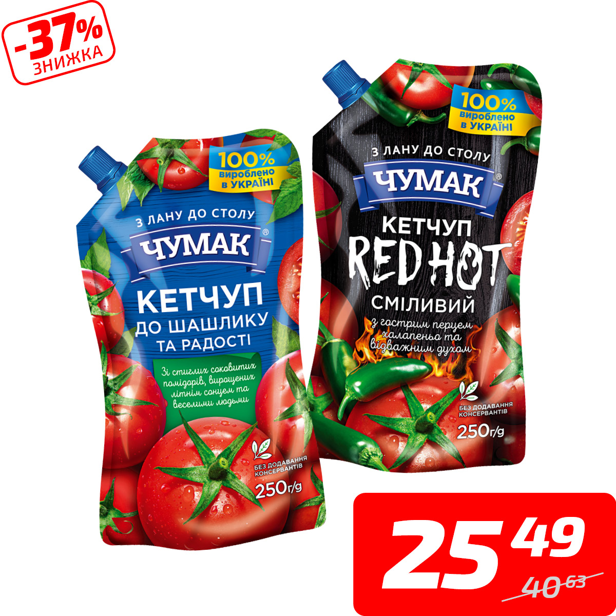 Кетчуп в асортименті, ТМ «Чумак», 250 г