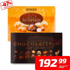 Цукерки «Київ вечірній», 176 г або «Чоколатерія», 194 г, ТМ «Рошен»
