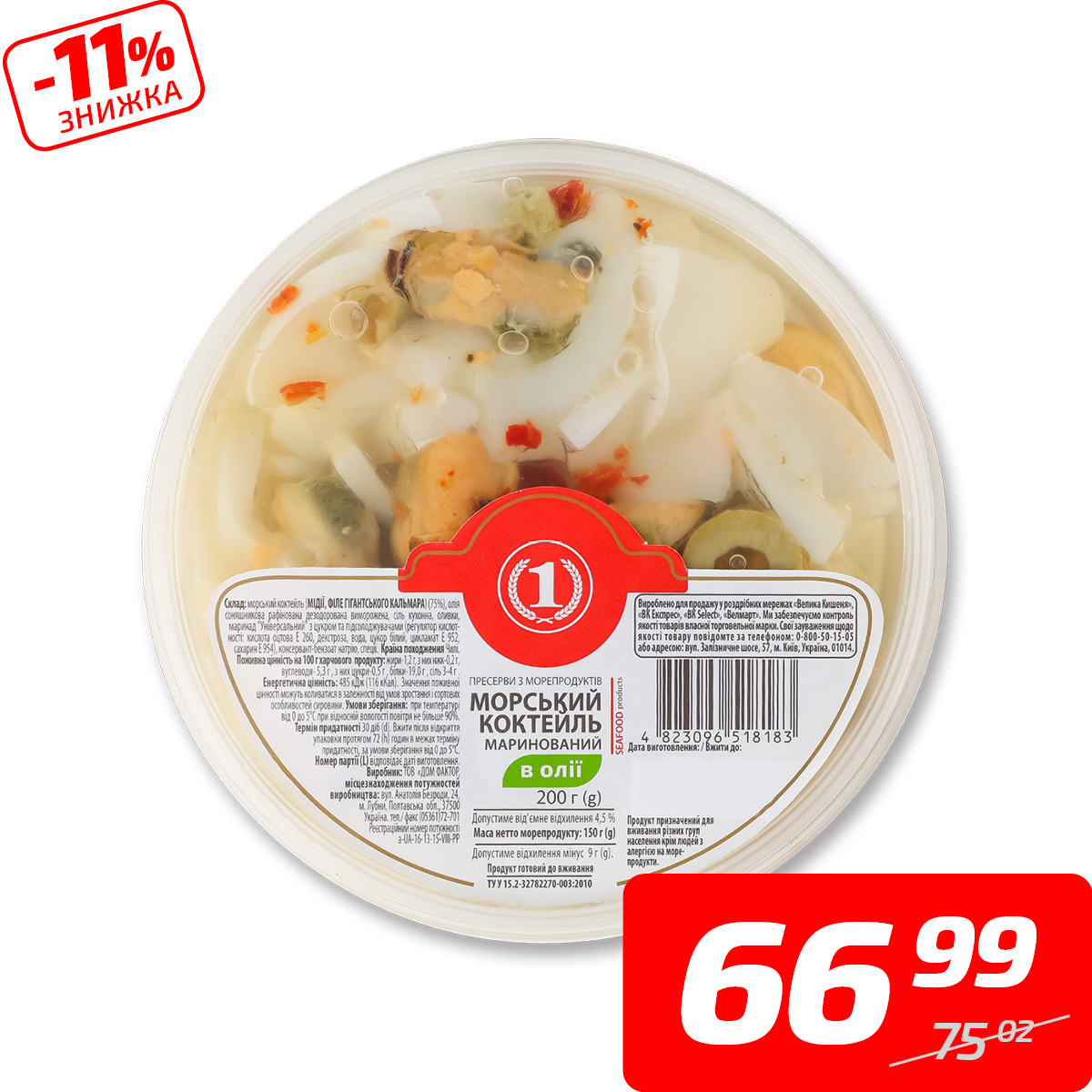 Коктейль морський в олії, ТМ «1», 200 г