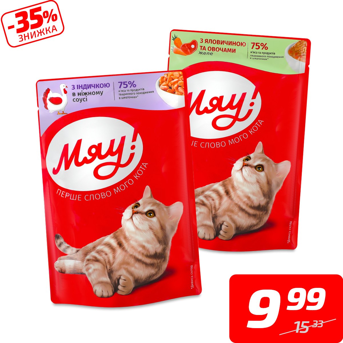 Корм для котів в асортименті, пауч, ТМ «Мяу!», 85 г