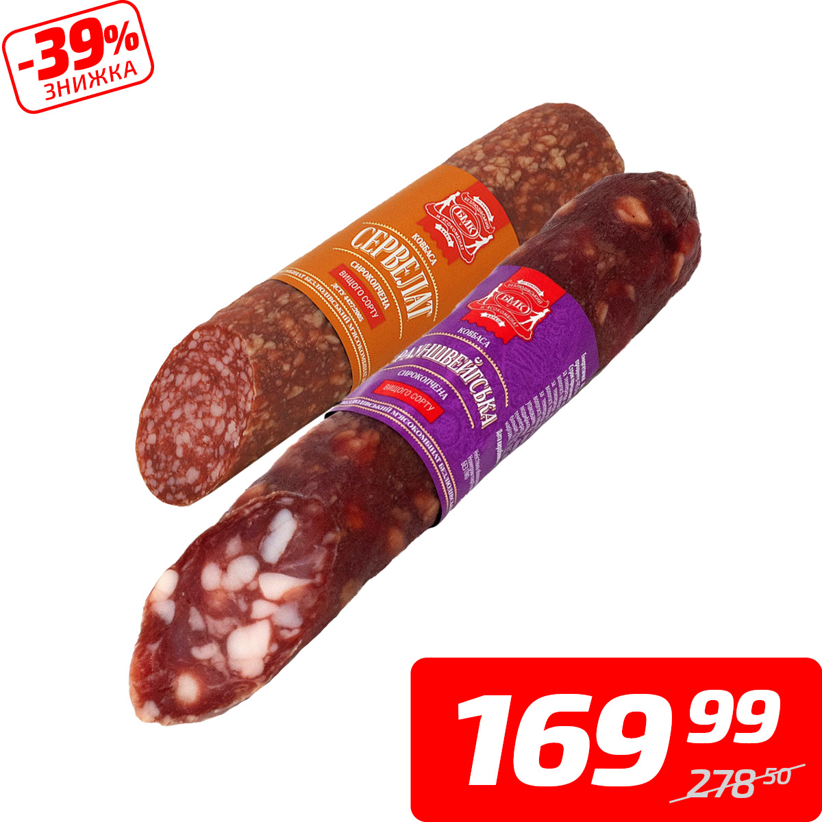 Ковбаса «Брауншвейгська» або «Сервелат», с/к, в/ґ, ТМ «Безлюдівський МК», 300 г