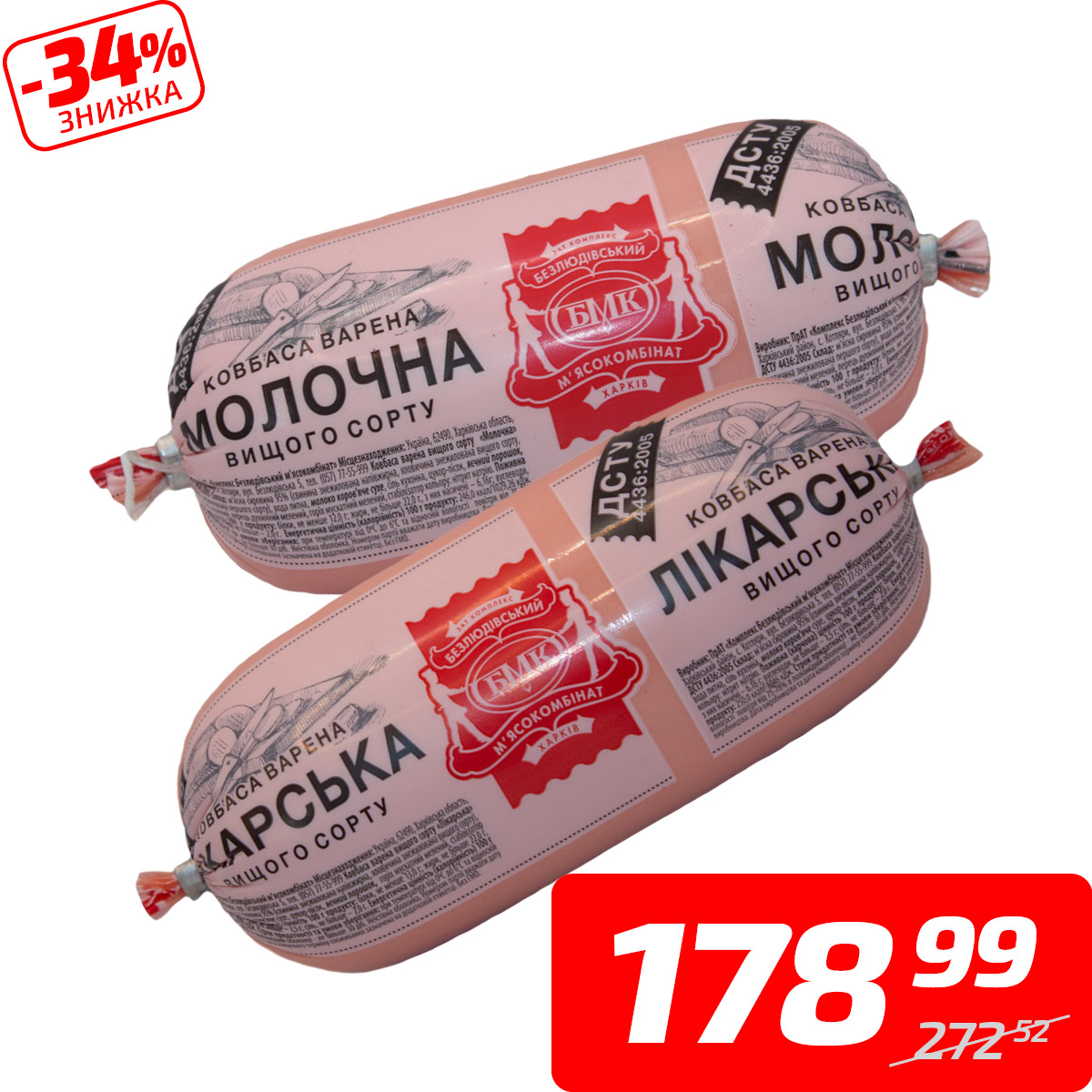 Ковбаса «Лікарська» або «Молочна», варена, в/ґ, ТМ «Безлюдівський МК», 1 кг