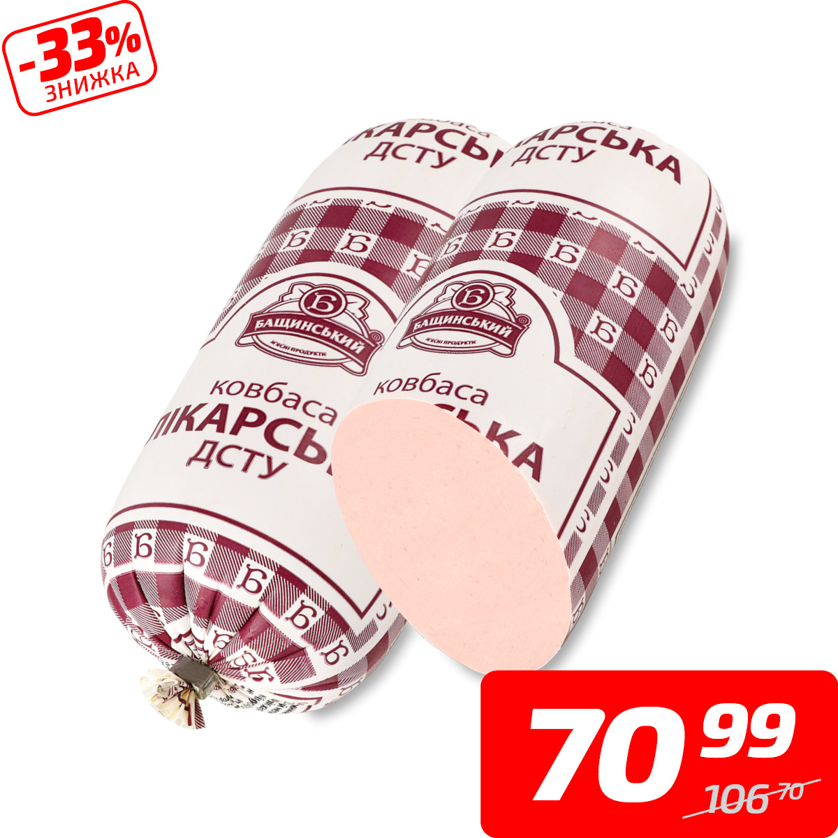 Ковбаса «Лікарська», варена, в/ґ, ТМ «Бащинський», 435 г