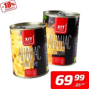 Ананас кільця або шматочки в легкому сиропі, ТМ «Хіт Продукт», 565 г
