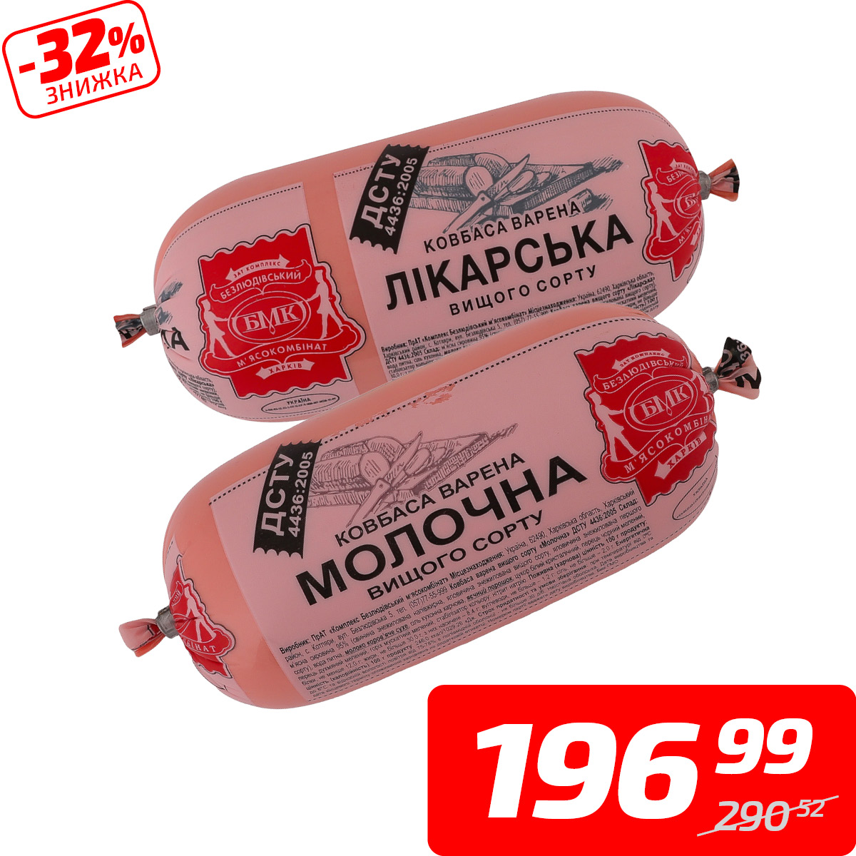 Ковбаса «Молочна» або «Лікарська» варена, в/ґ, ТМ «Безлюдівський МК», 1 кг