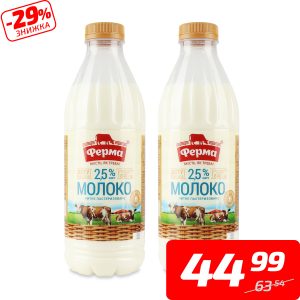 Молоко пастеризоване, 2,5%, ТМ «Ферма», 840 г