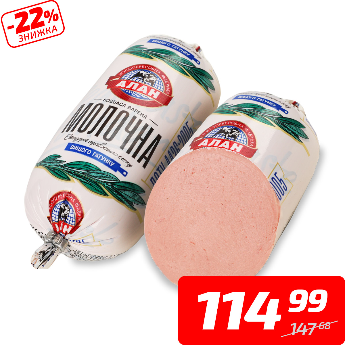 Ковбаса «Молочна», варена, в/ґ, ТМ «Алан», 400 г