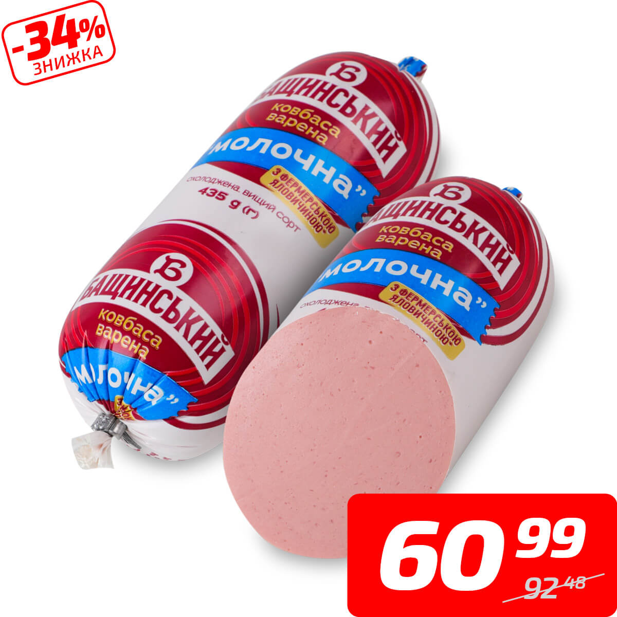 Ковбаса «Молочна», варена, в/ґ, ТМ «Бащинський», 435 г