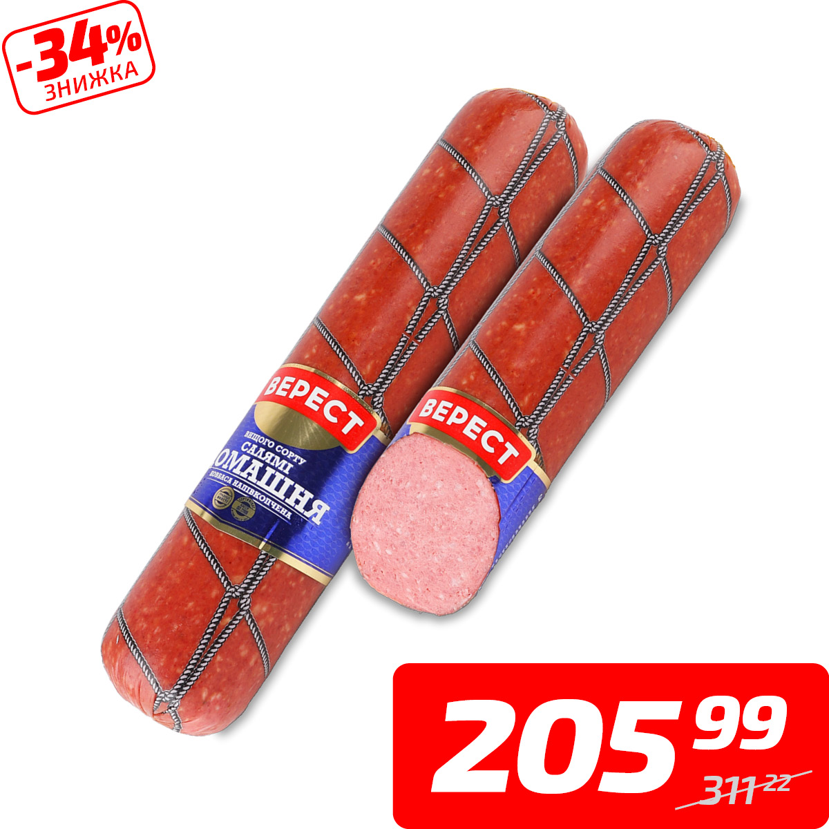 Ковбаса «Салямі Домашня», н/к, в/ґ, ТМ «Верест», 1 кг