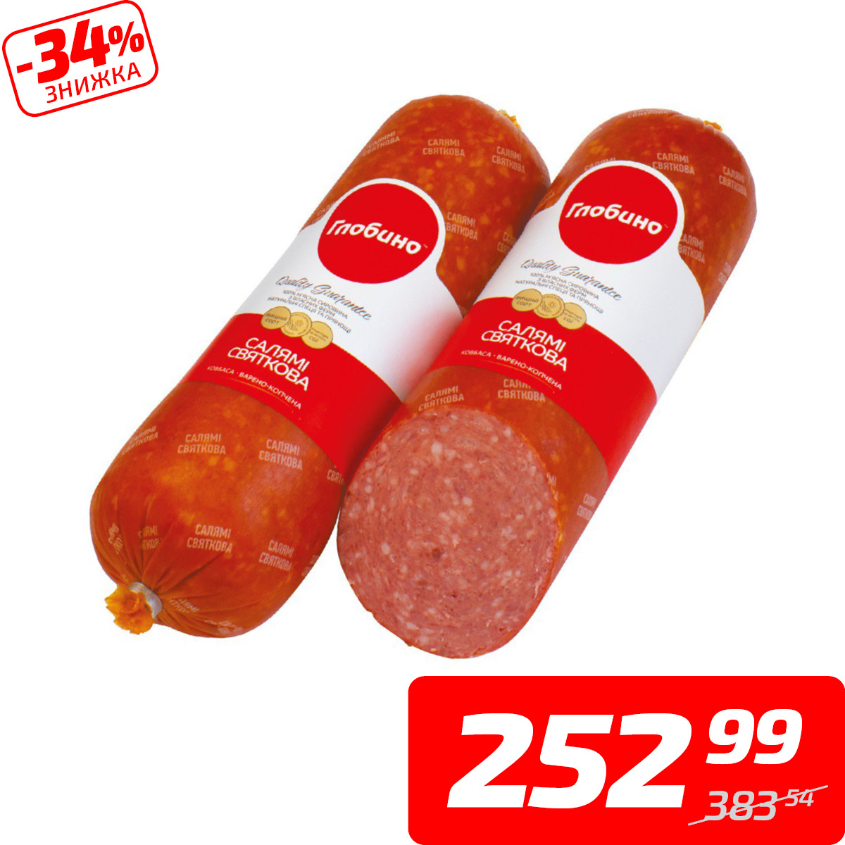 Ковбаса «Салямі Святкова», в/к, в/ґ, ТМ «Глобино», 1 кг