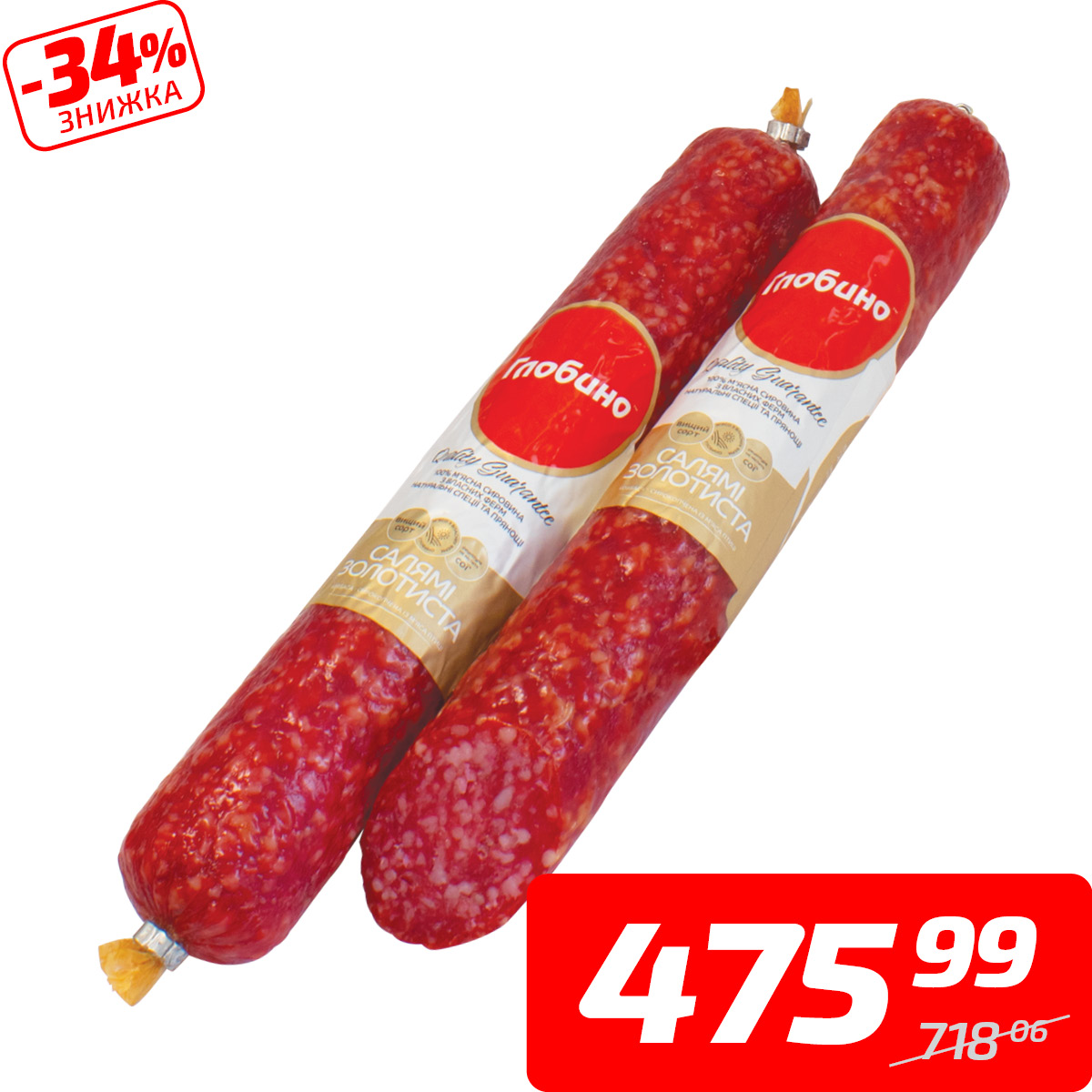 Ковбаса «Салямі Золотиста», с/к, в/ґ, ТМ «Глобино», 1 кг