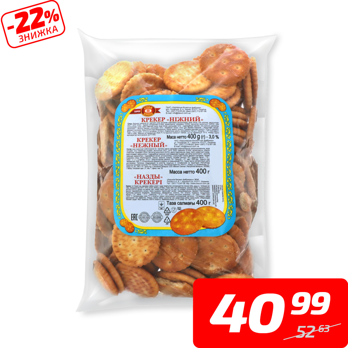 Крекер «Ніжний», ТМ «Бісквіт-шоколад», 400 г