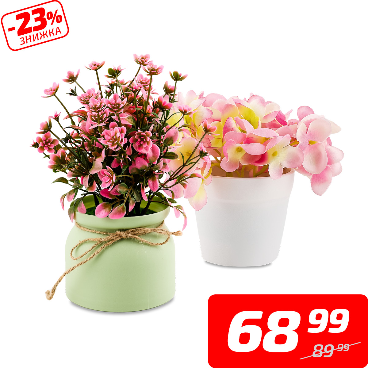 Квіти штучні у горщику в асортименті, 18*20 см або 11*11 см