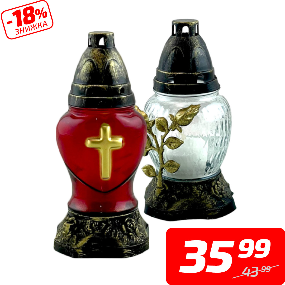 Лампадка з декором на 18 годин, скло, 1 шт.