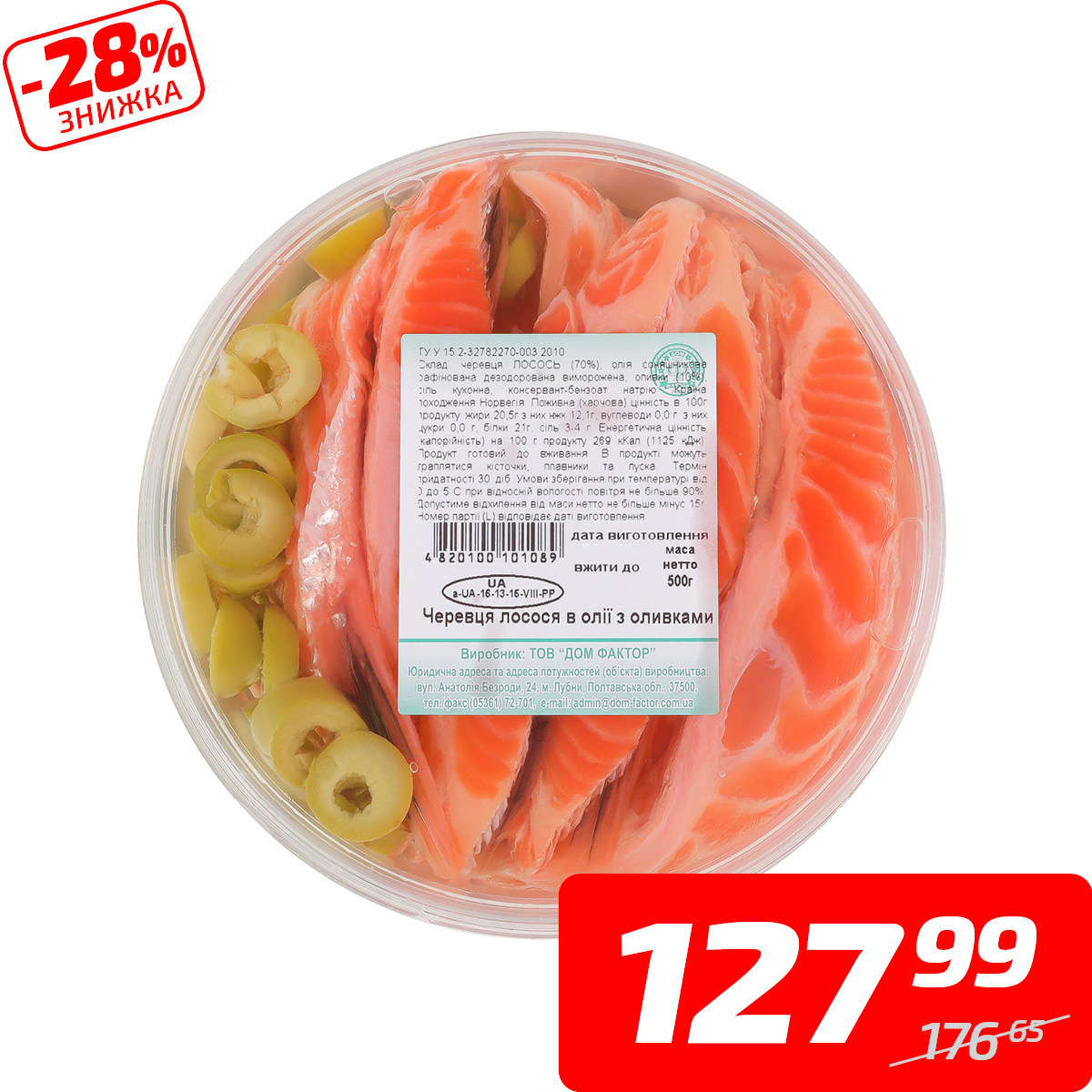 Лосось черевця в олії з оливками, ТМ «Дім Фактор», 500 г
