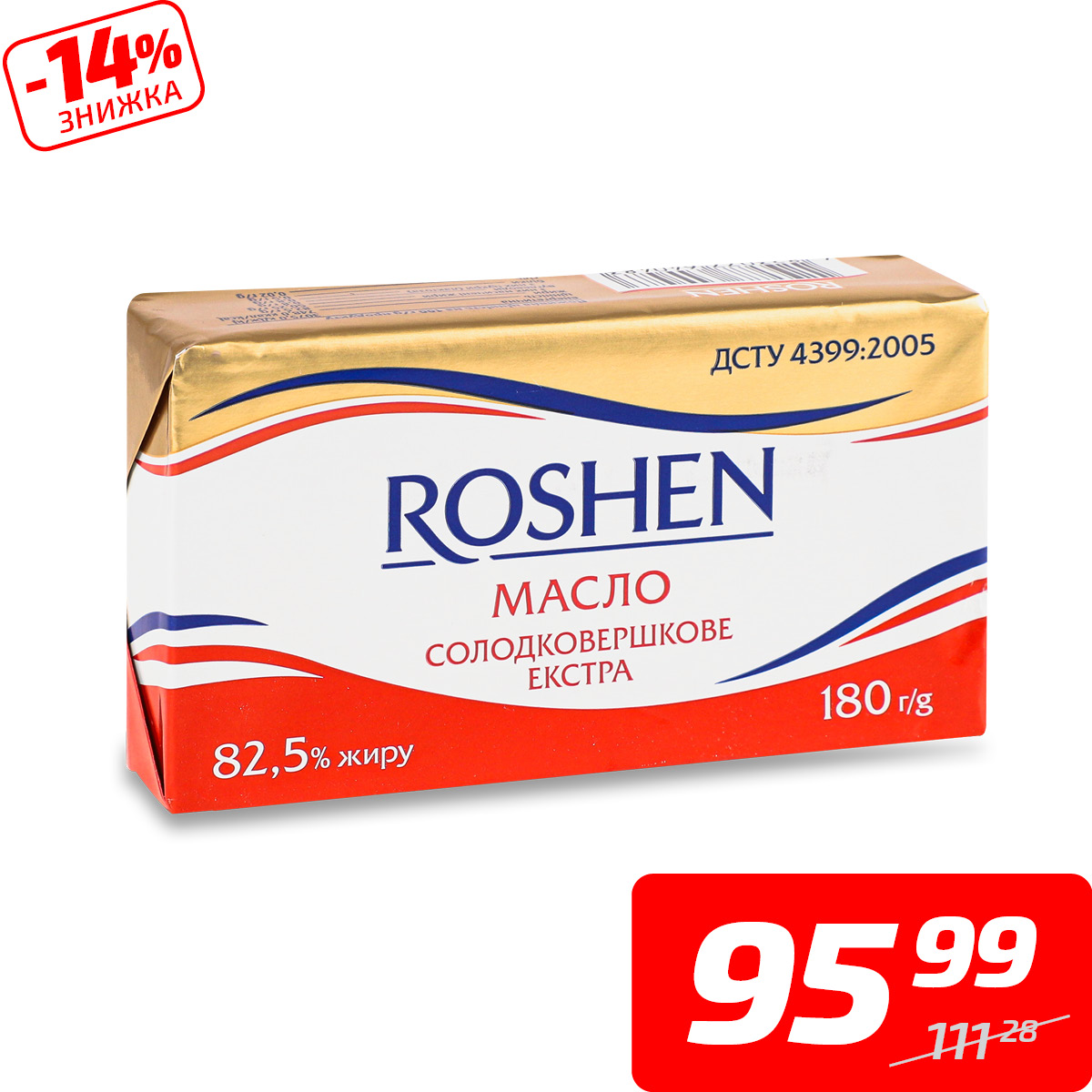 Масло «Екстра» солодковершкове, 82,5%, ТМ «Рошен», 180 г