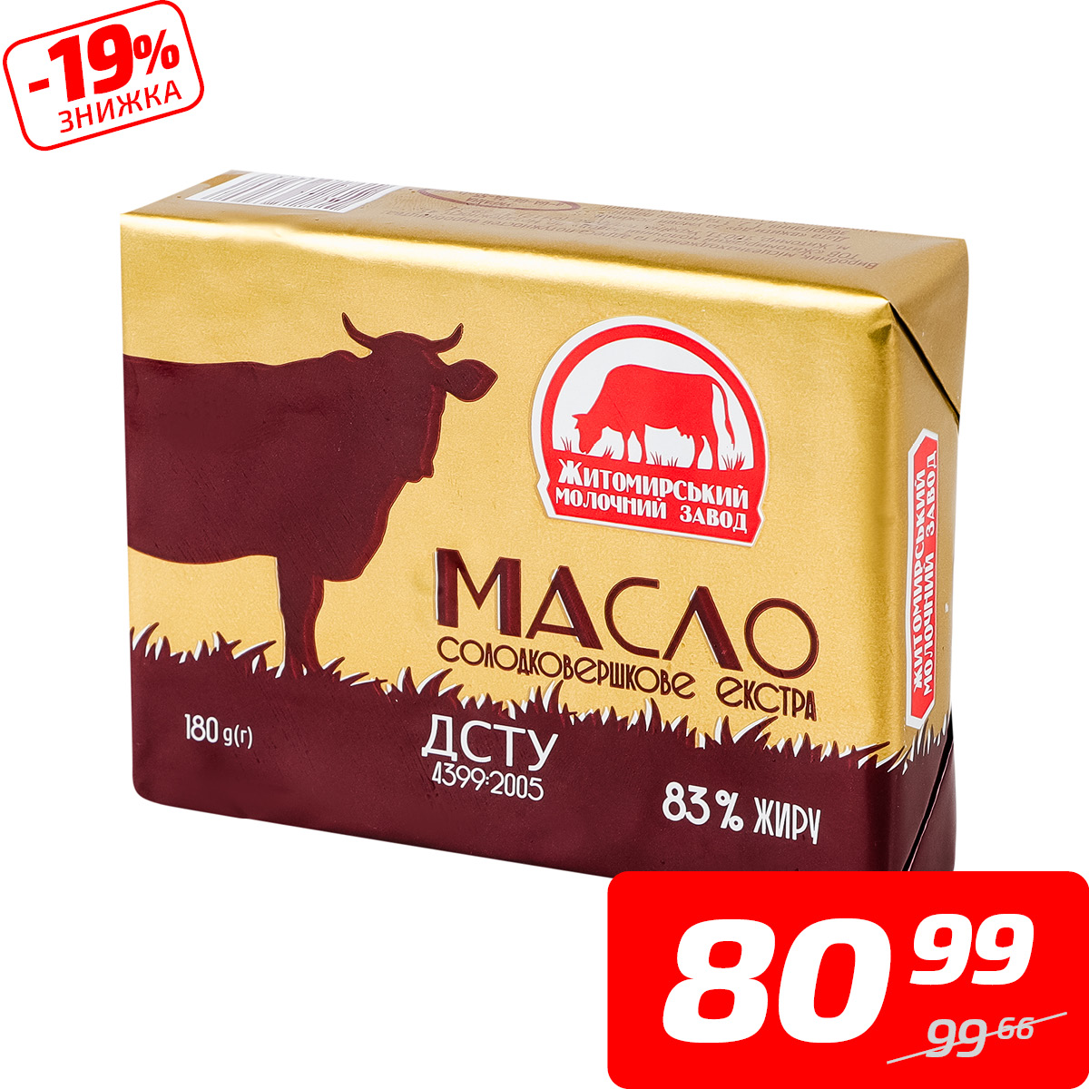 Масло «Екстра» солодковершкове, 83%, ТМ «Житомирський молочний завод», 180 г