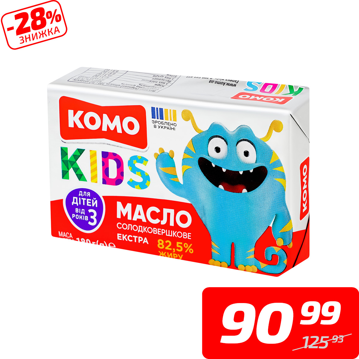 Масло «Екстра» солодковершкове, від 3 років, 82,5%, ТМ «Комо Кідз», 180 г