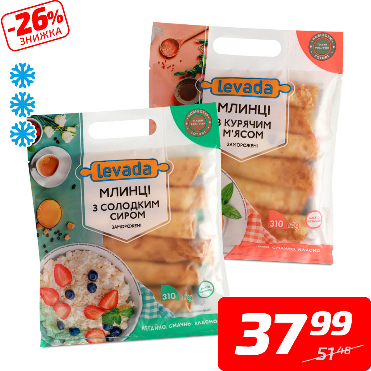 Млинці з солодким сиром або з курячим м’ясом, ТМ «Levada», 310 г