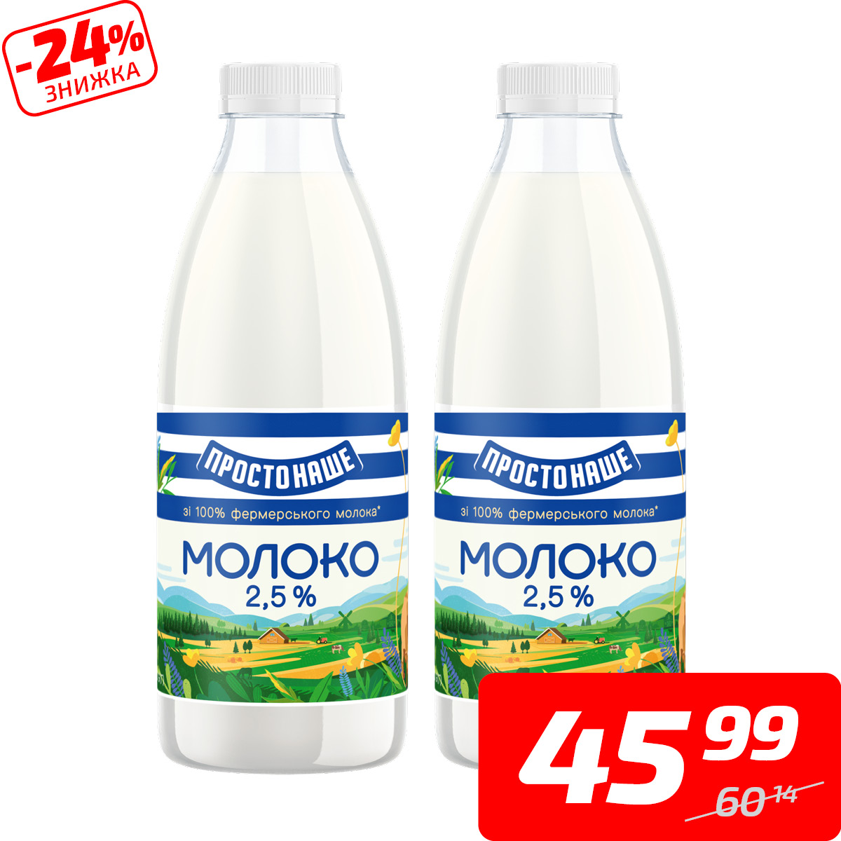 Молоко пастеризоване, 2,5%, ТМ «Простонаше», 870 г