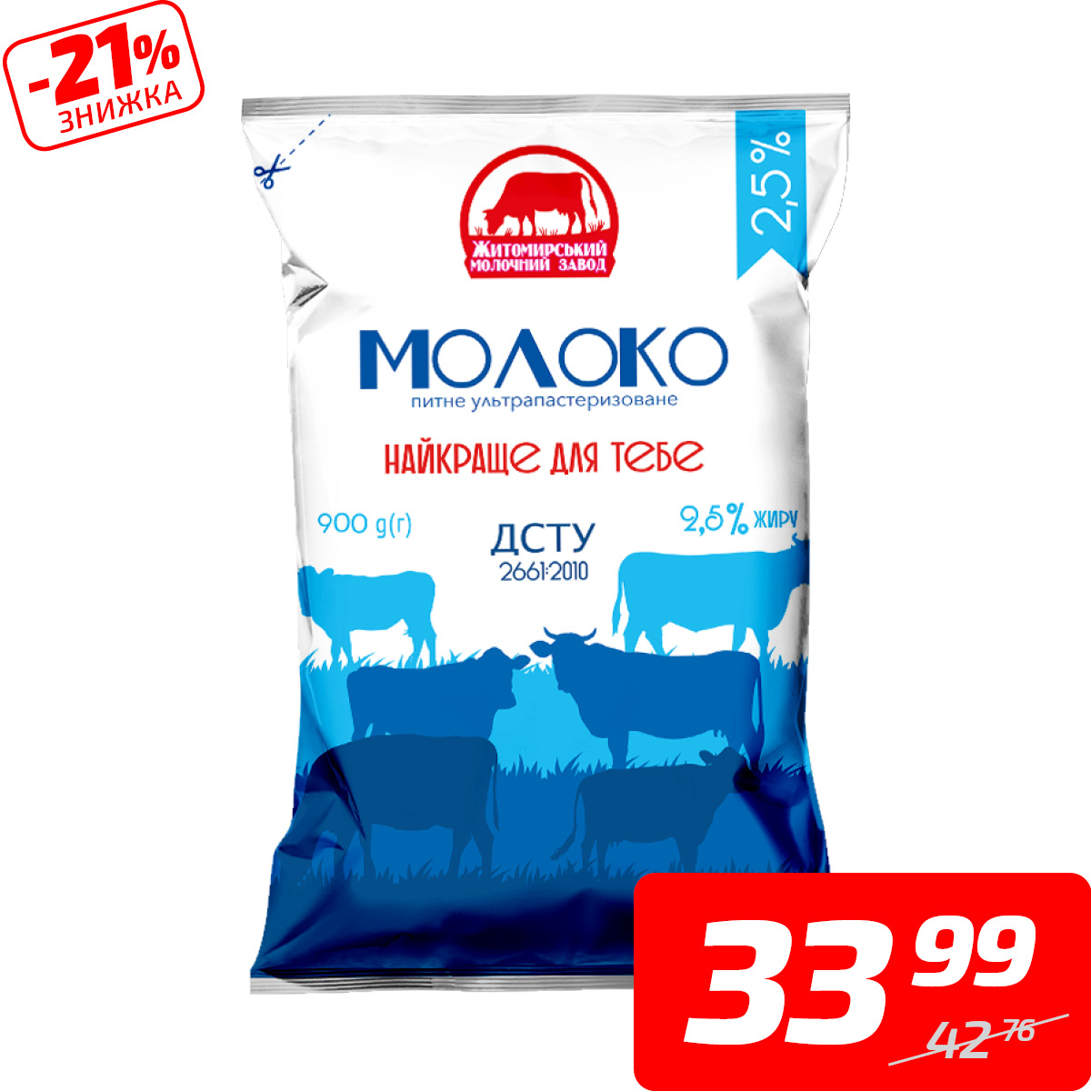 Молоко ультрапастеризоване, 2,5%, ТМ «Житомирський молочний завод», 900 г