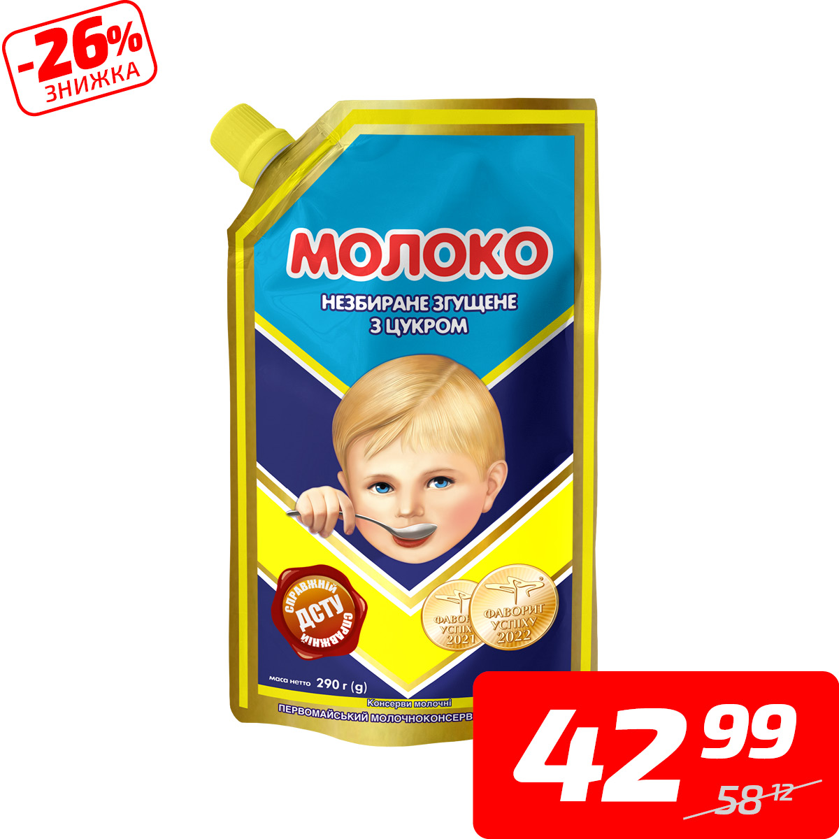 Молоко згущене з цукром, 8,5%, ТМ «Первомайський МКК», 290 г