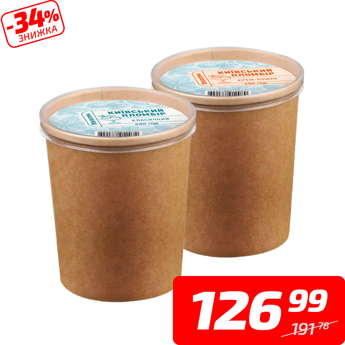 Морозиво «Пломбір» класичний або крем-брюле, ТМ «Київський пломбір», 450 г
