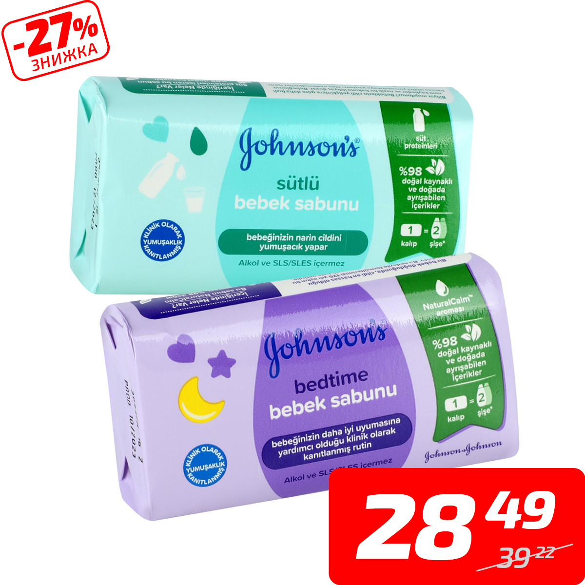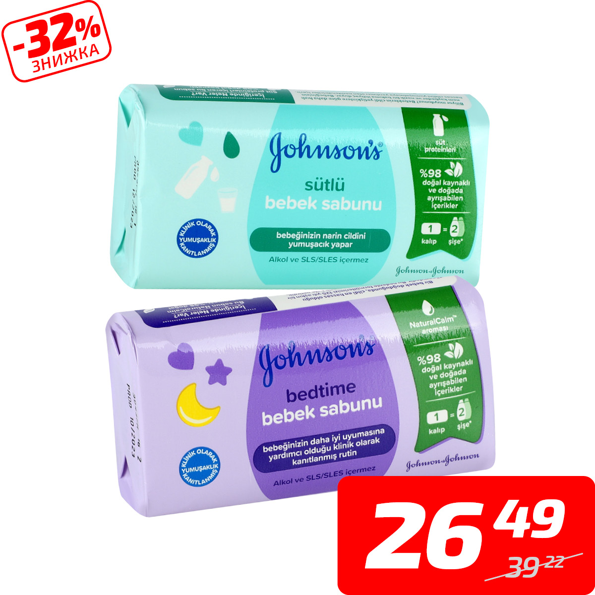 Мило дитяче з екстрактом молока або лаванди, ТМ «Johnson’s Baby», 90 г
