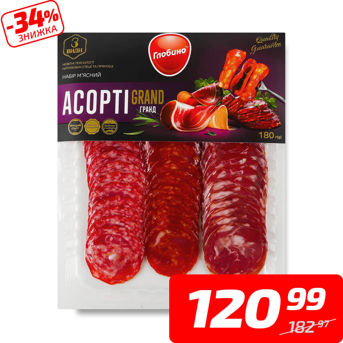 Набір м’ясний «Асорті Гранд», нарізка, ТМ «Глобино», 180 г
