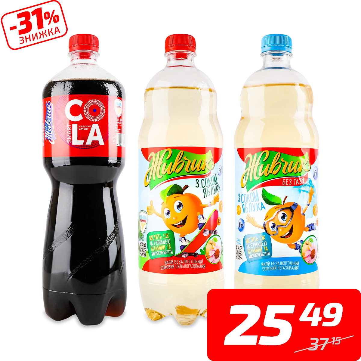 Напій безалкогольний «Живчик» в асортименті, ТМ «Оболонь», 1 л