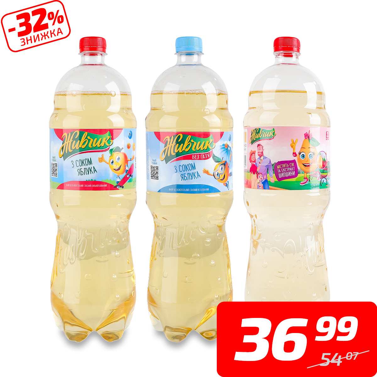 Напій безалкогольний зі смаком груші або яблука, сильногазований або негазований, ТМ «Живчик», 1,8 л