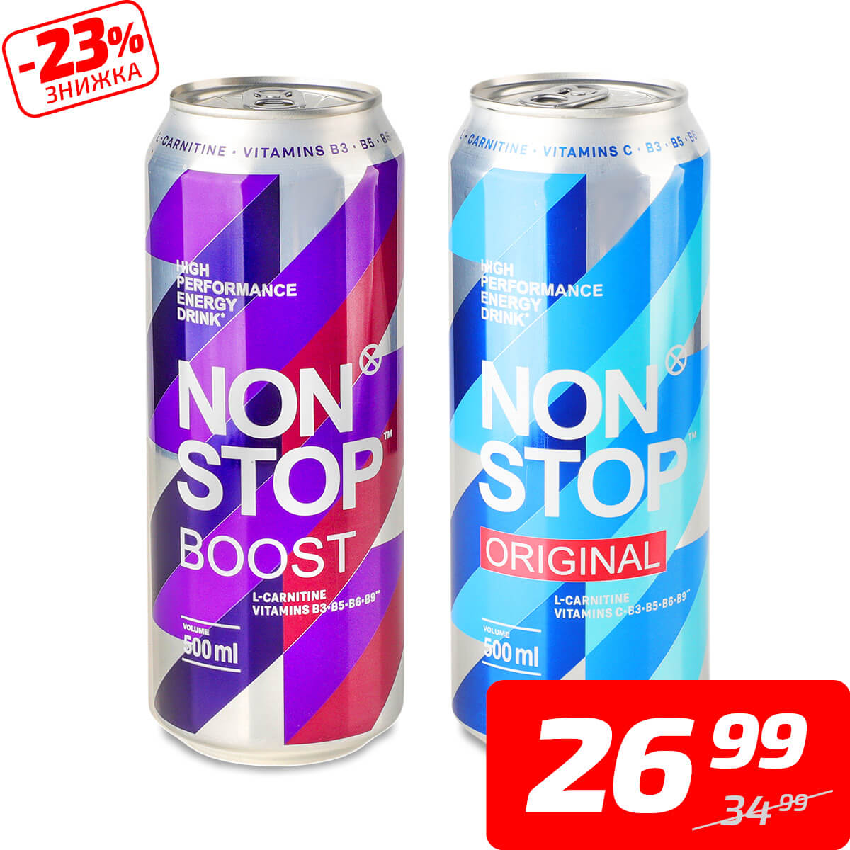 Напій енергетичний, безалкогольний, в асортименті, ТМ «Нон Стоп», 0,5 л